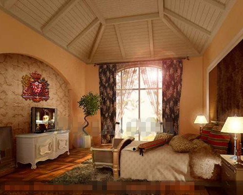 Exotic warm yellow bedroom