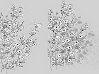Japanese line drawing of plant material -25 Vector flowers (