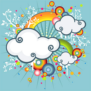 KeyWords:Rainbow, clouds, round, vines,