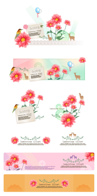 KeyWords:Vector material, flowers, note