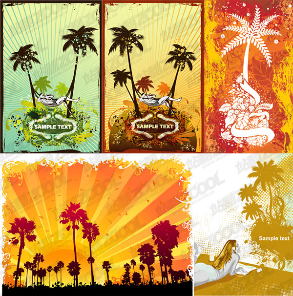 Description:5 coconut trees subject illustrator vector material