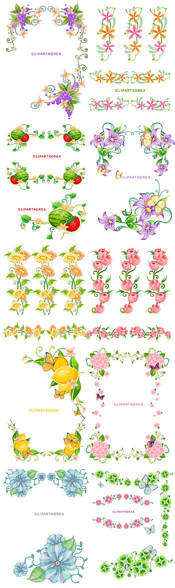Description:South Korea flowers, fruit and butterfly lace Vector material