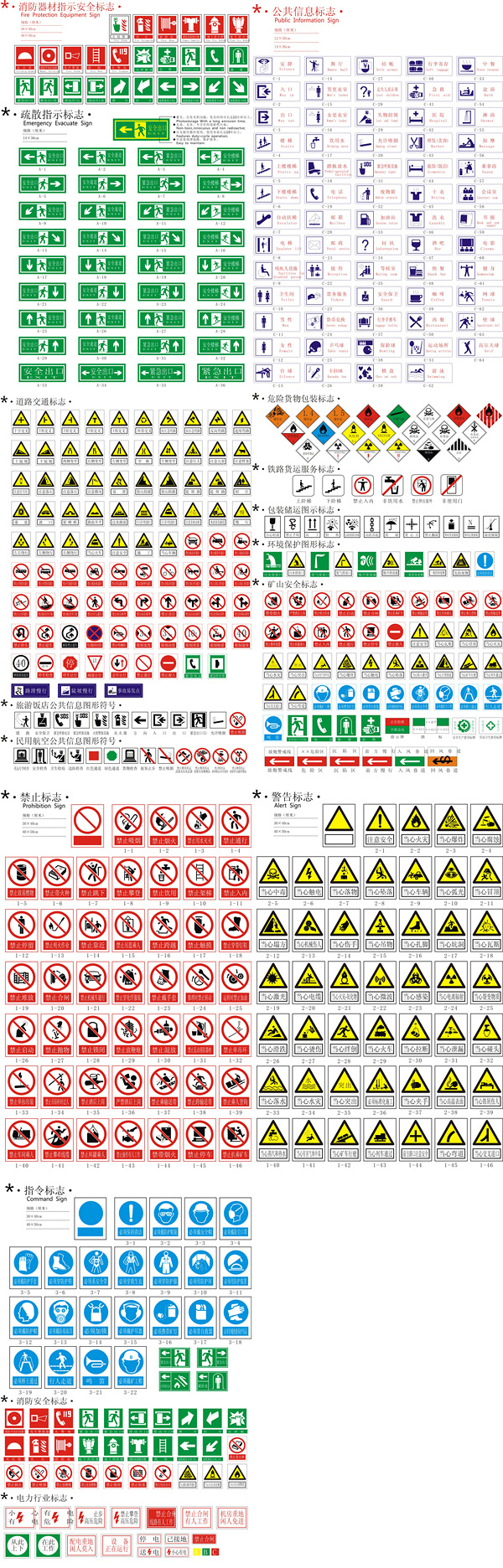 Safety, warning, prohibition of all kinds of signs, not including jpg preview map