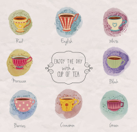 8 tea drinks watercolor design vector material