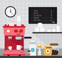 Kitchen coffee machine and cup with vector